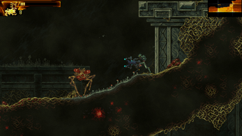 Fantastic atmosphere and gameplay! The fluid movement feels great and the enemies pose an actual threat, which is really appreciated! Only gripe I have is that the jumping feels like it carries a bit too much momentum, even if you only press the buttons for a short time, which led to me overshooting platforms quite a bit. Otherwise a really polished and promising demo!